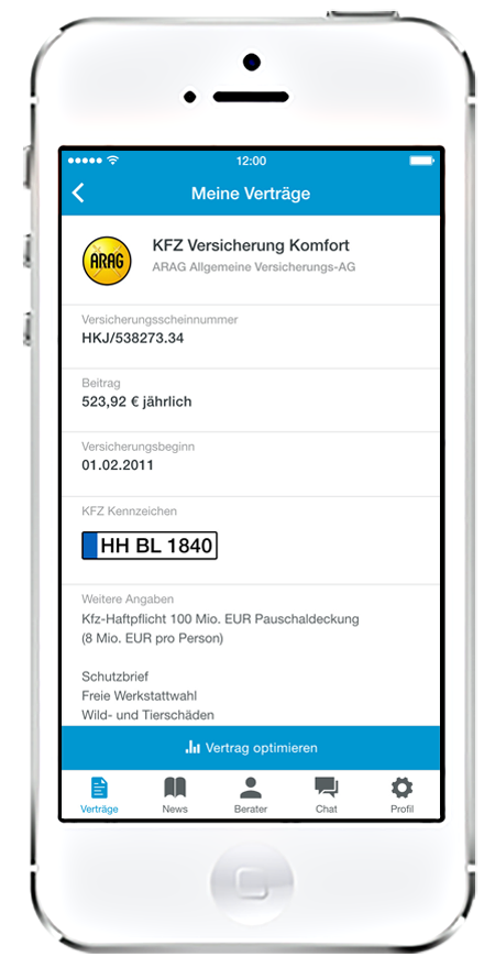 So erhalten Sie KOSTENFREI einen einfachen und mobilen Überblick über Ihre Versicherungspolicen. Im Schadenfall sind Sie nur einen Klick von unserem kompetenten Beraterteam entfernt.